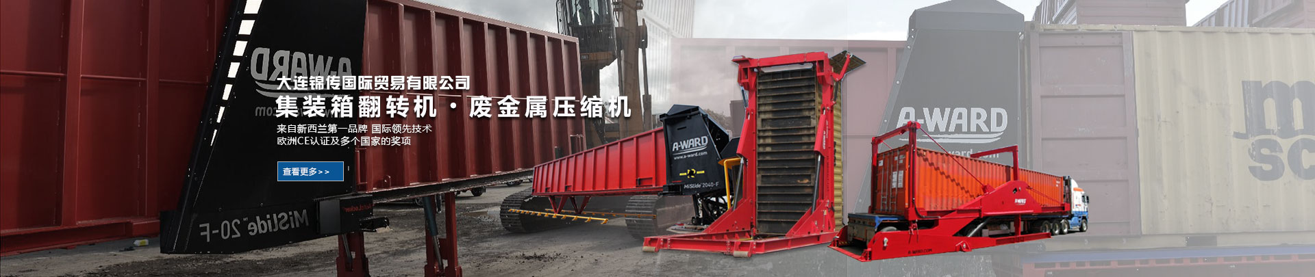 大連錦傳國際貿(mào)易有限公司于2013年11月與新西蘭A Ward公司達(dá)成戰(zhàn)略合作,成功代理集裝箱翻轉(zhuǎn)機(jī)、廢金屬壓縮機(jī)等產(chǎn)品在中國大陸的銷售、維護(hù)及保養(yǎng)業(yè)務(wù)。本公司重合同、守信用,保證產(chǎn)品質(zhì)量,以經(jīng)營多種特色的產(chǎn)品和薄利多銷的原則,贏得了廣大客戶的信任與厚愛?,F(xiàn)長期出口產(chǎn)品至澳大利亞,巴西,德國,俄羅斯,哥倫比亞,美國,泰國,羅馬尼亞,新西蘭 ,意大利,越南,印度,印度尼西亞等國家。